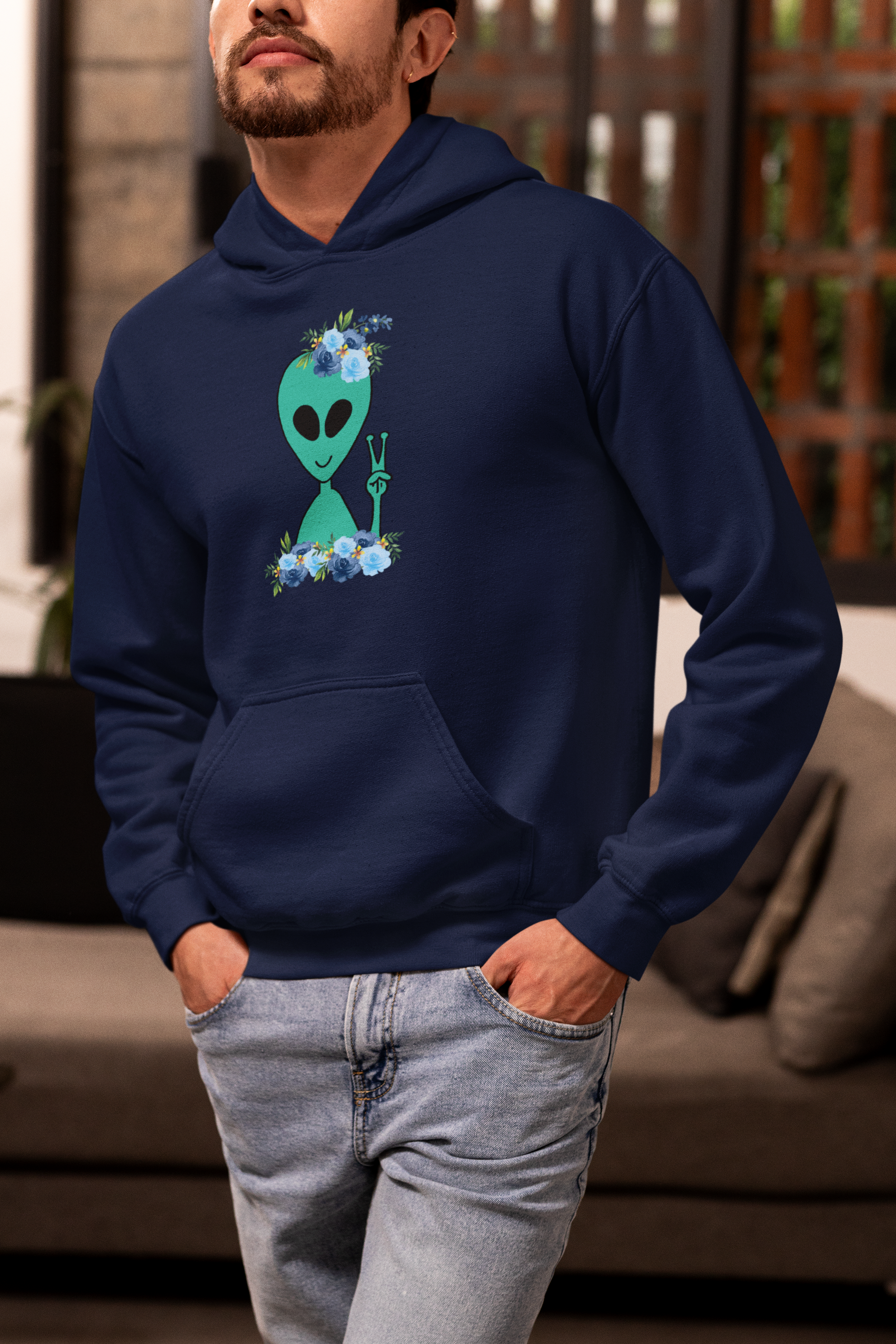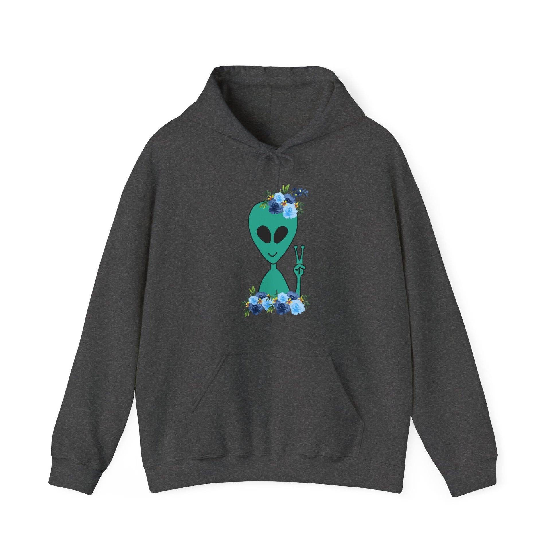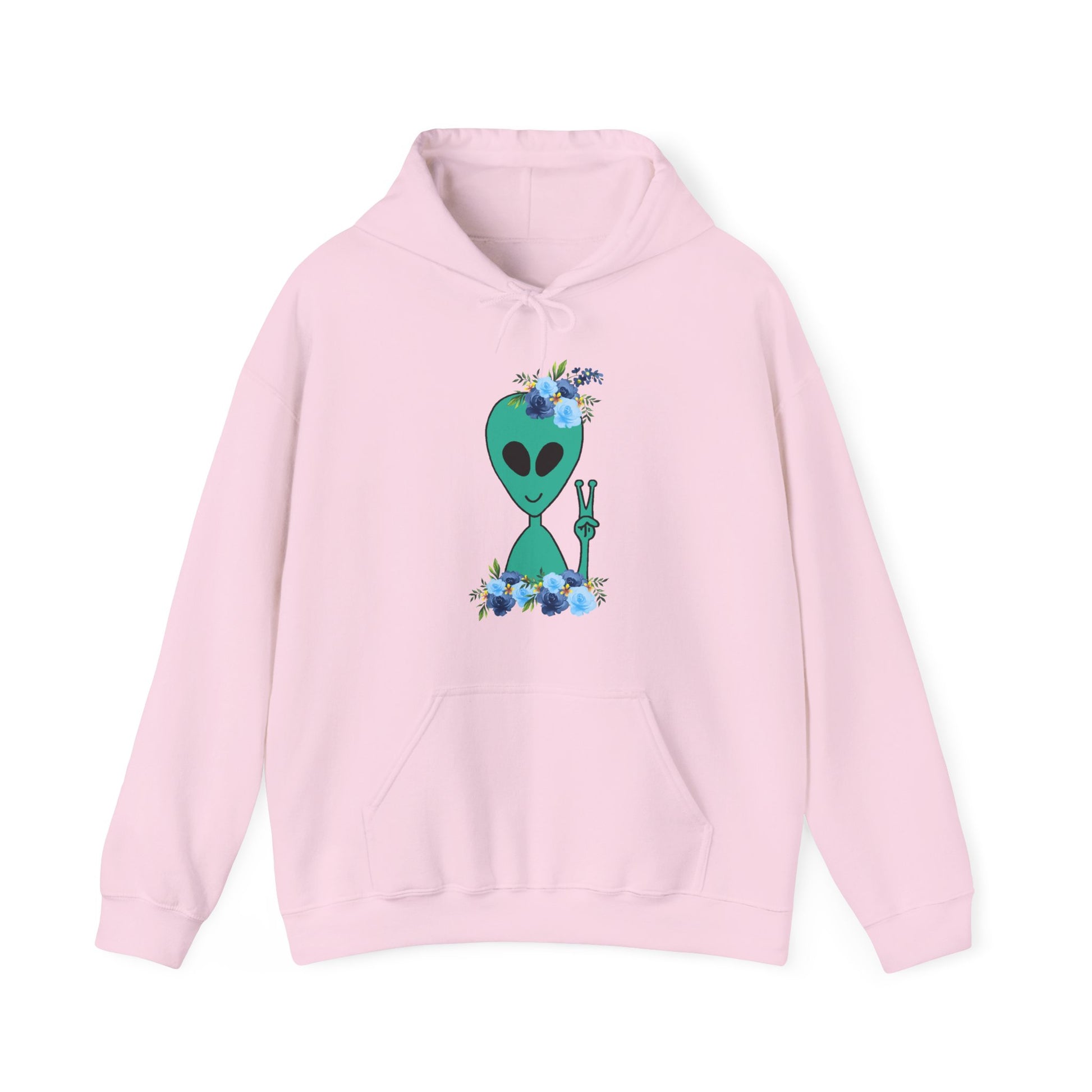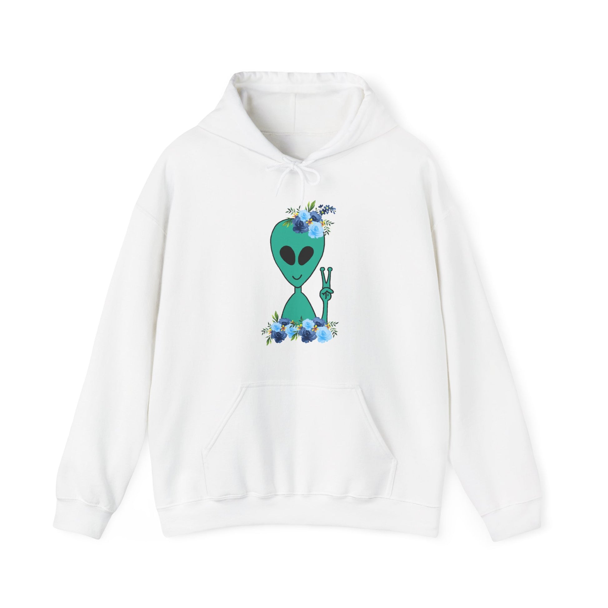 Take your style to the stars with this cosmic alien hoodie 👽 For those who love all things extraterrestrial and anyone who’s out of this world! This happy alien with his blue flower crown is the perfect gift for UFO lovers, sci-fi fans, believers and space enthusiasts. This friendly, peaceful alien will bring his galaxy vibes with you wherever you go!