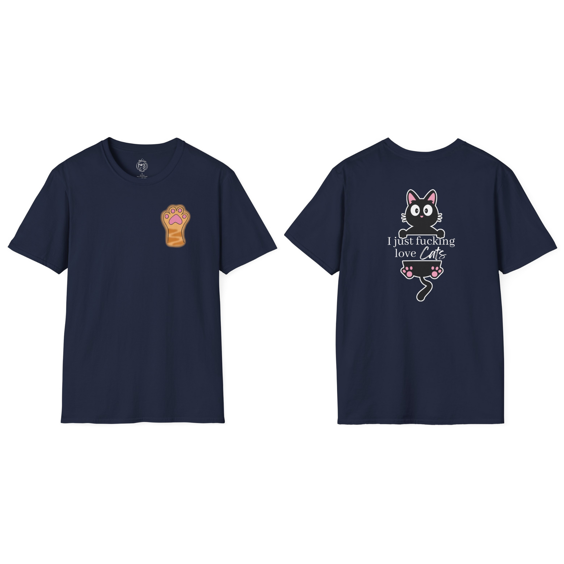 Paw (front) I Just Fucking Love Cats (back) Unisex T-Shirt
